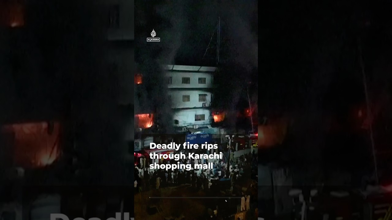 Video reveals firefighters battling a lethal blaze at a shopping center in Karachi, Pakistan. A hearth tore by means of the multi-storey Gul Plaza on Saturday evening, killing a minimum of 5 folks and injuring dozens. Authorities say the trigger stays below investigation.